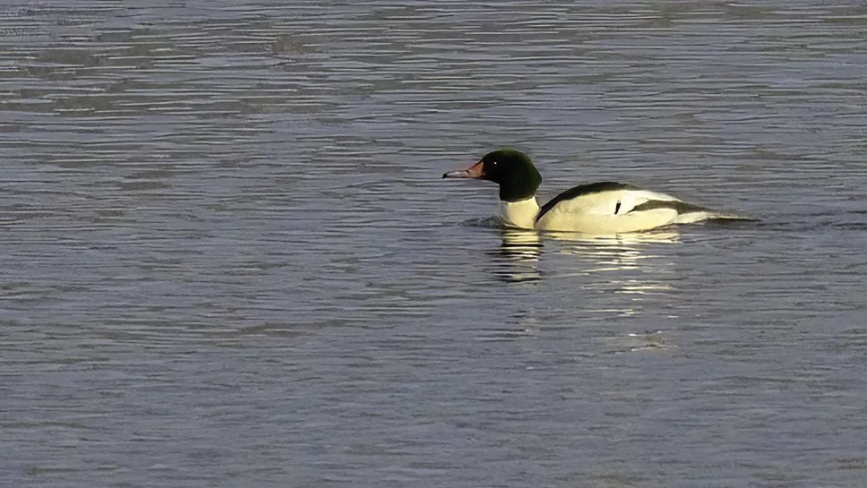 A second shot from today’s outing was that of a Common Merganser about 200 yards out in the Hudson. I was using my compact Nikon Zfc with a 50 - 250 mm lens because it is lightweight and easy to carry. I had not planned on photographing a bird at such great distance. The other factor going against me was that this was later in the afternoon and in spite of the fact that it was a chilly day, heat shimmer always degrades an image at that distance. None the less, I decided to capture the image and hope for the best. After considerable cropping so as to enlarge the image of the duck, and a good deal of refining with Lightroom, I was able to come up with an acceptable photograph of the merg. Now, is this a quality photograph ? Far from it. The head of the merganser is irridescent green. That does not show up in this image. Nor does the fine feather detail along the flanks. But it is a record of the first Common merganser of the season that I had seen. So again, am I looking for perfection as a photographer or am I looking to get an account of what I saw today?