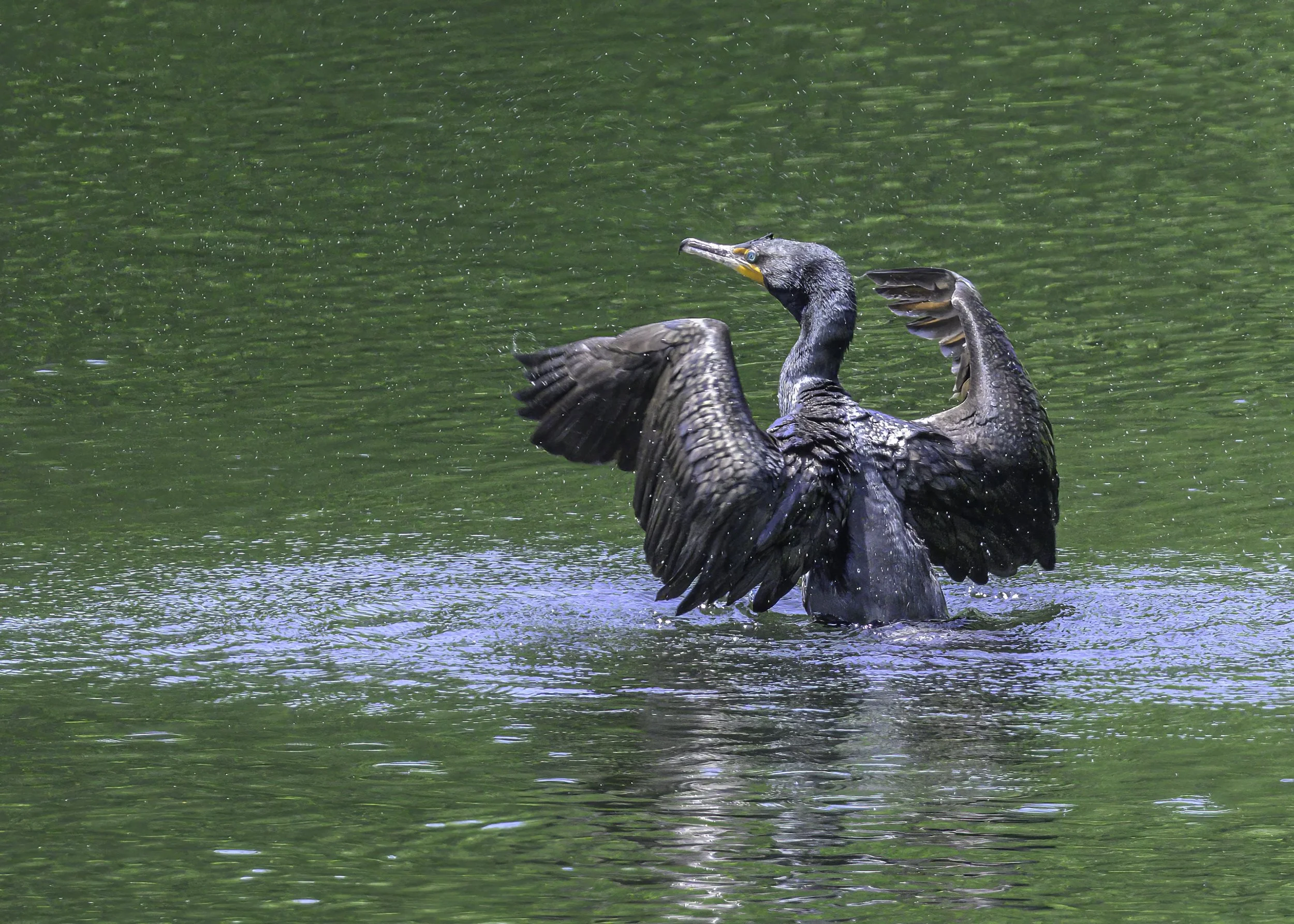 When we finally reached the reservoir, we were greeted by a lone Double-crested cormorant. One of the most prominent characteristics of this bird is its deep azure eyes. The bird seemed to be quite comfortable with our presence, but eventually he did lift up and flew down Doodletown Brook towards the Hudson where we do see Cormorants fairly often. Near the spot where we first saw the cormorant, we spotted a second species of frog for the day…the Green frog.