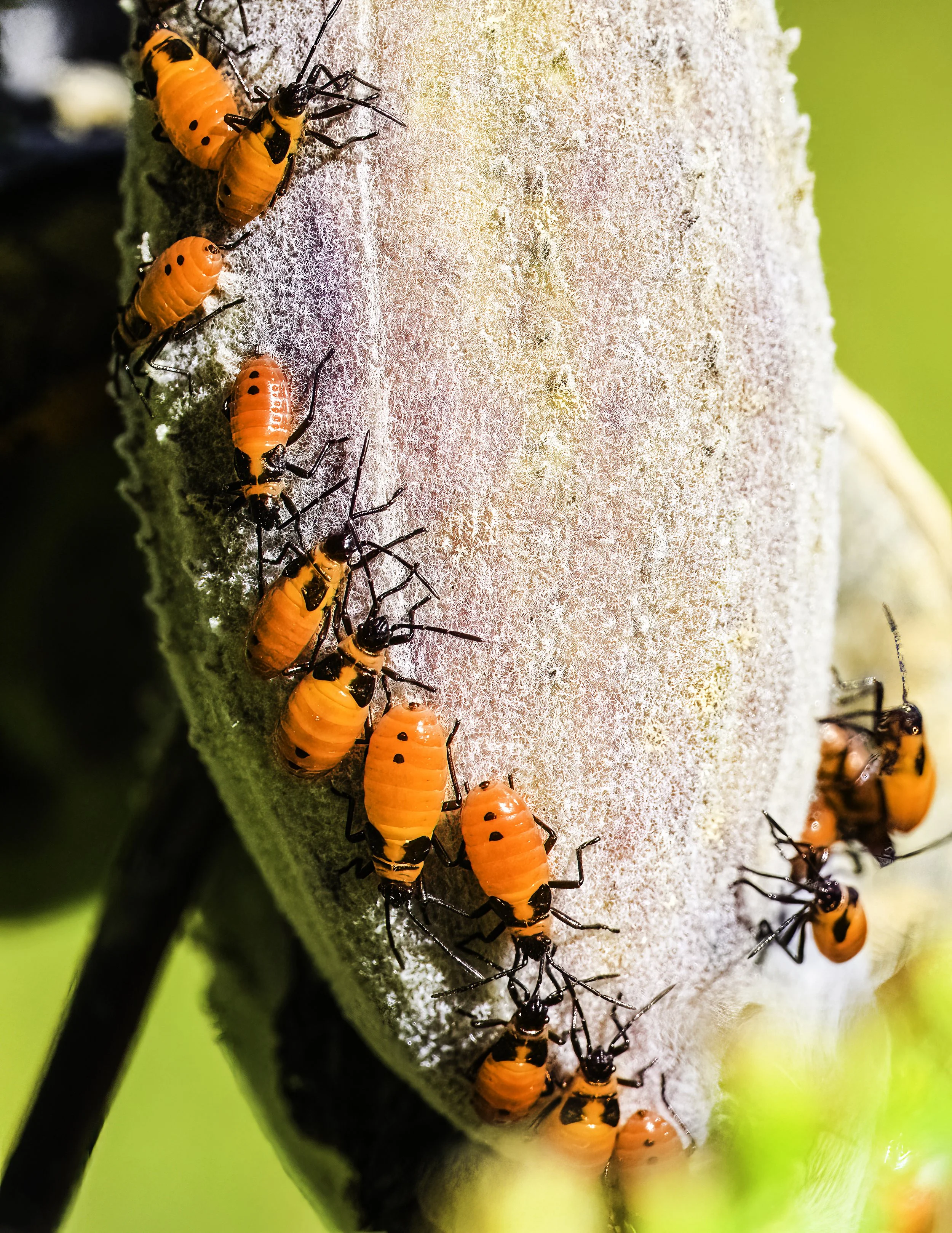 True, there are insect and other “Meaty” organisms around in fall, but they are not all good food sources for the birds. These Large milkweed bugs are striking insects known for their bright orange and black coloration, which serves as a warning to predators about their toxicity. They primarily feed on the seeds of milkweed plants, extracting toxic compounds that make them unpalatable.