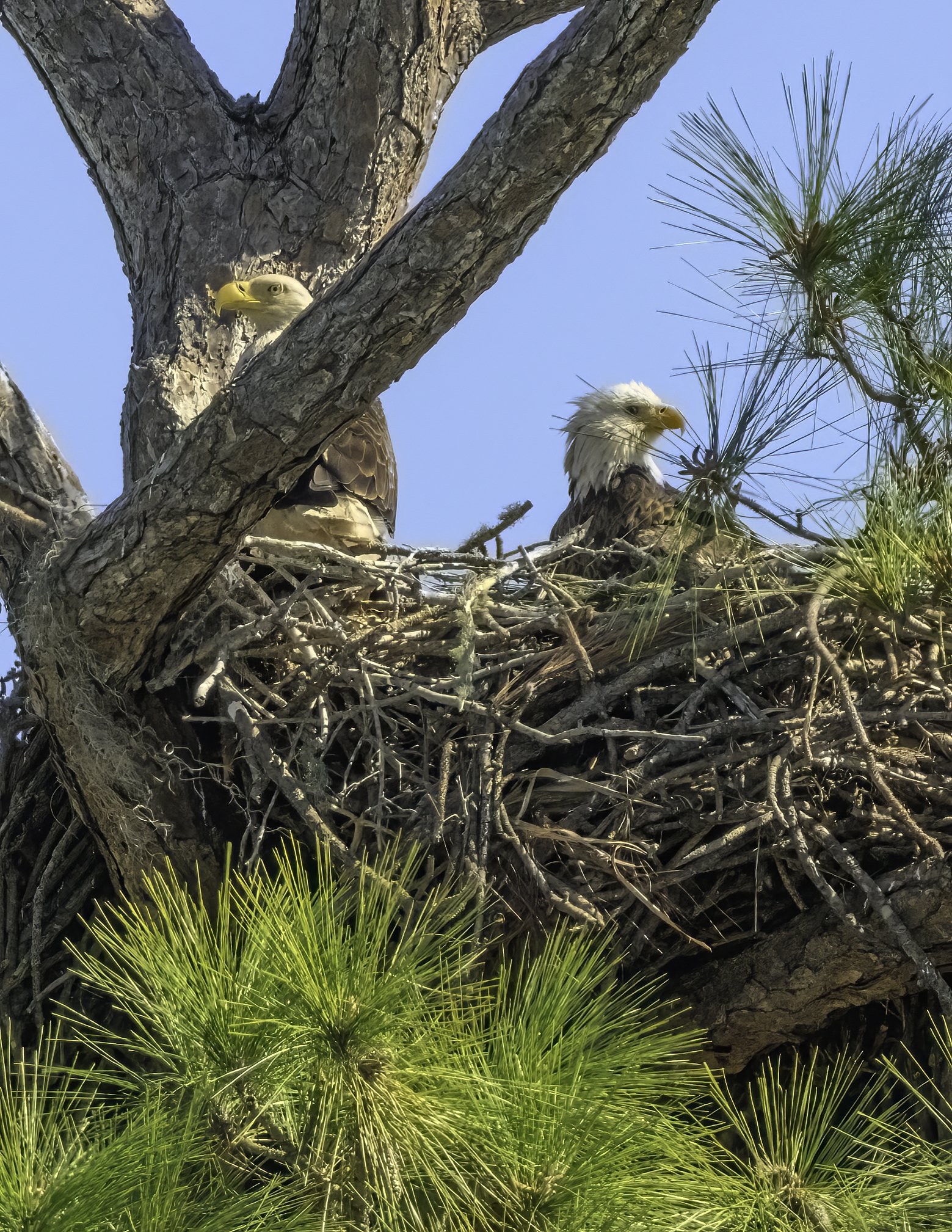 We headed out to Merritt Island NWR down Kennedy Parkway to check on the Bald eagle’s nest where we hoped to see progress at that site. At first, we only had the adults.