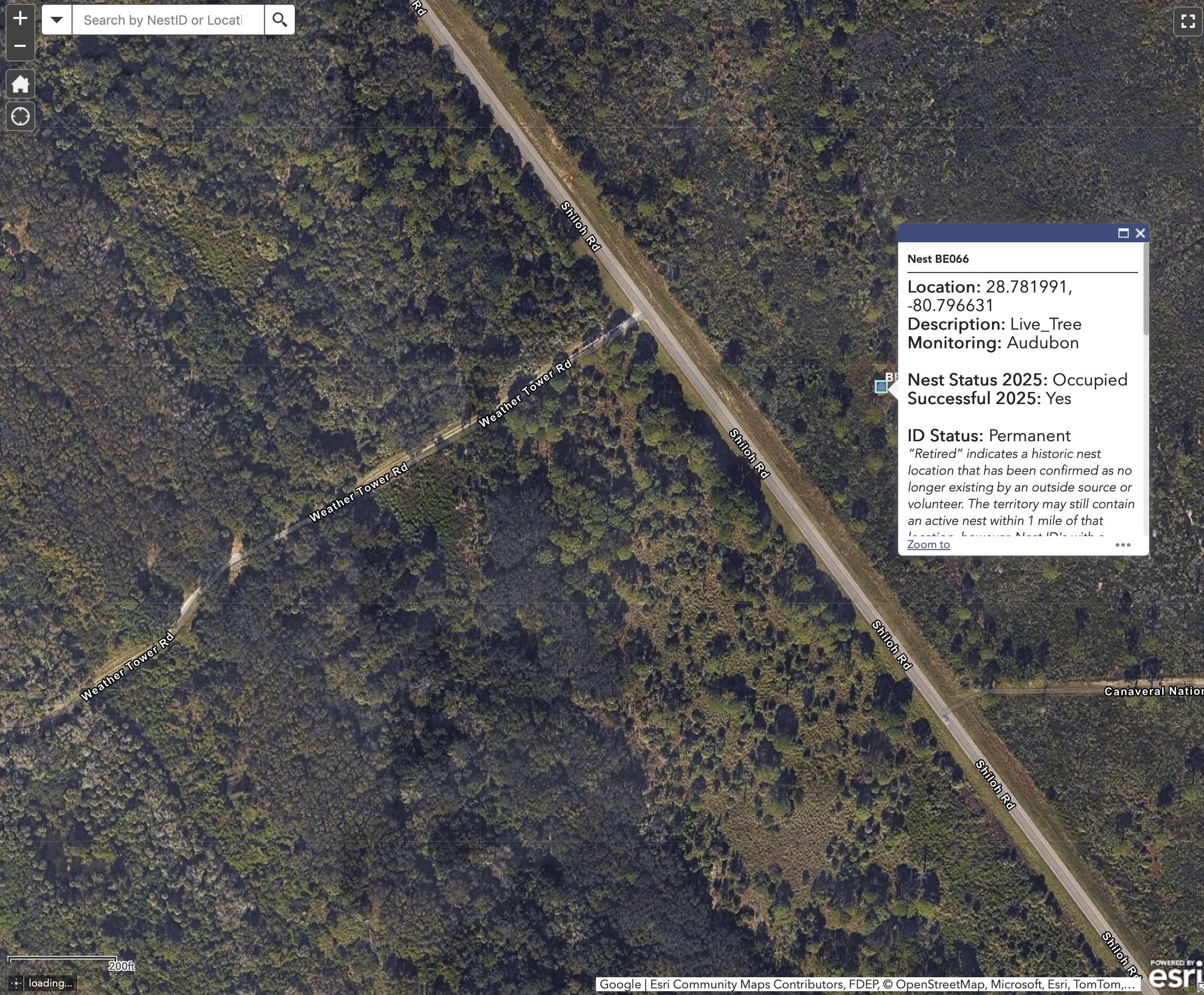 Our second nest site of interest is a long-standing productive nest on Ranken Drive in Edgewater, Florida. This nest is officially known as VO106 as tagged by Audubon’s Eagle Nest Monitoring project. We’ve been following the activity at this site each winter over the past several years, and it has been quite successful at producing successful clutches of young eagles each year. While we did find a nice mature keeping watch over this nest today, we did not see any activity inside the nest. Additionally, we noticed that this tree is in bad shape with much of the foliage turning brown. Hopefully, the resident eagles won’t figure it’s time to move to