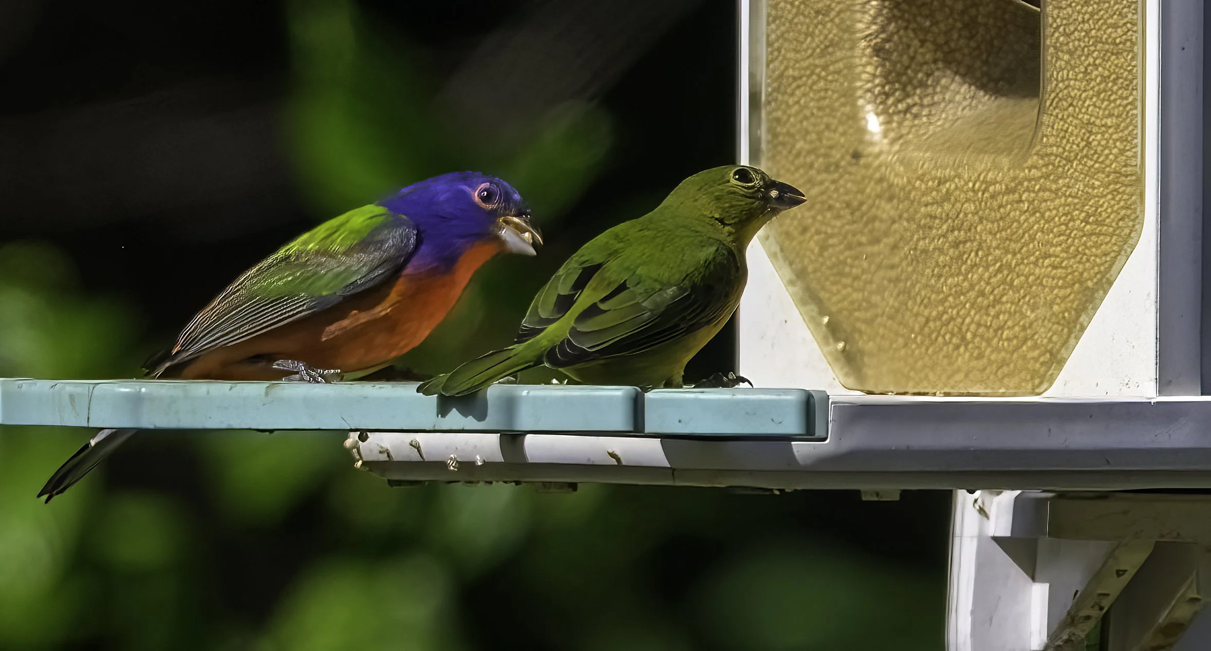 Male and female Painted buntings visit the feeder at the Merritt Island Visitors Center